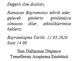 İlim Dünyası Dergisi’nin 15. ve 16. sayıları erişime eçılmıştır. Linke tıklayarak erişim sağlayabilirsiniz: https://www.ilimdunyasidergisi.org/