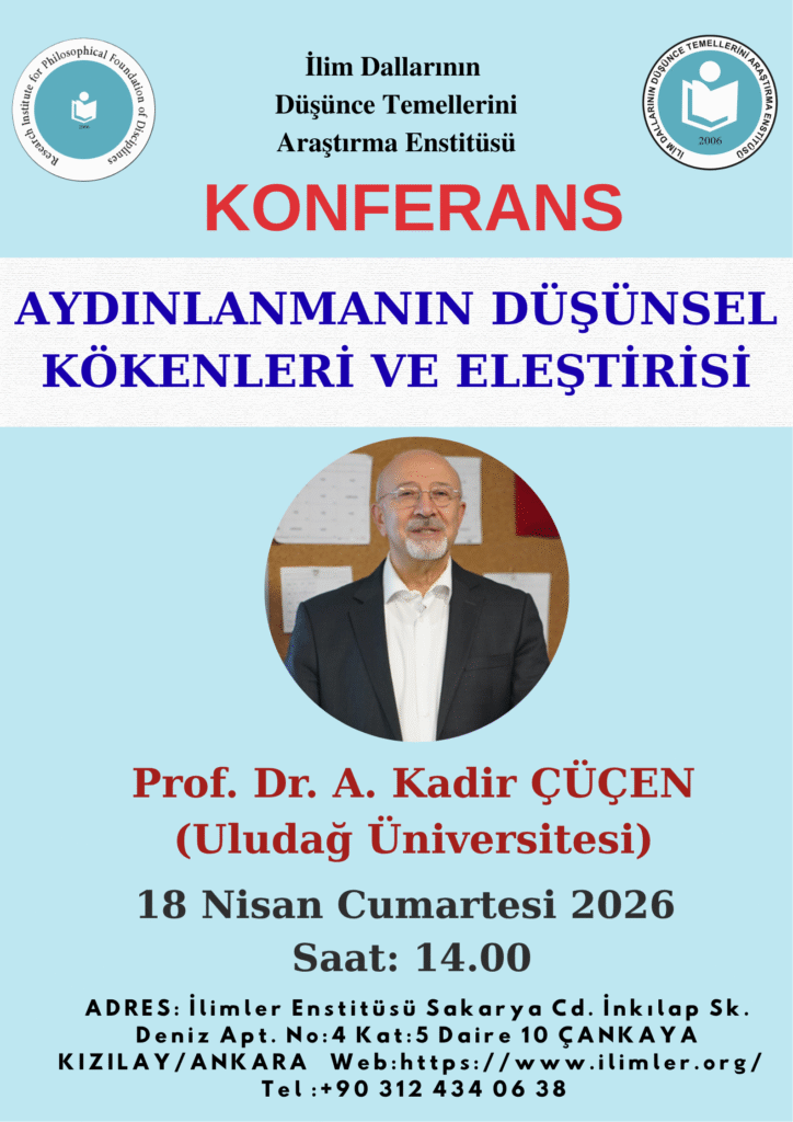 18 Nisan 2026 Cumartesi günü saat 14.00’te Enstitü Merkezimizde Uludağ Üniversitesi Öğretim Üyesi Prof. Dr. A. Kadir ÇÜÇEN, “Aydınlanmanın Düşünsel […]