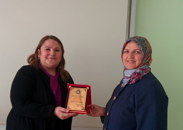 Günün anısına Enstitümüz adına Yönetim Kurulu Üyemiz İsmahan YURT tarafından Yrd. Doç. Dr. Derya Adalar Subaşı’na plaket takdim edildi.