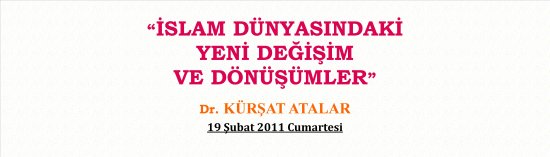 19 Şubat 2011 Cumartesi Saat 14.00’de Enstitümüz Zemahşerī Müzakere Meclisinde Dr. Kürşat ATALAR “İslam Dünyasındaki Yeni Değişim ve Dönüşümler”i değerlendirmeye