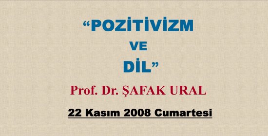 22 Kasım 2008 Cumartesi tarihinde İlim Dallarının Düşünce Temellerini Araştırma Enstitüsü’nde Prof. Dr. Şafak URAL, “POZİTİVİZM VE DİL” konulu konferansını