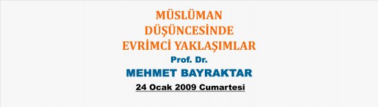 24 Ocak 2009 Cumartesi tarihinde İlim Dallarının Düşünce Temellerini Araştırma Enstitüsü’nde Prof. Dr. Mehmet BAYRAKTAR, “MÜSLÜMAN DÜŞÜNCESİNDE EVRİMCİ YAKLAŞIMLAR” konulu