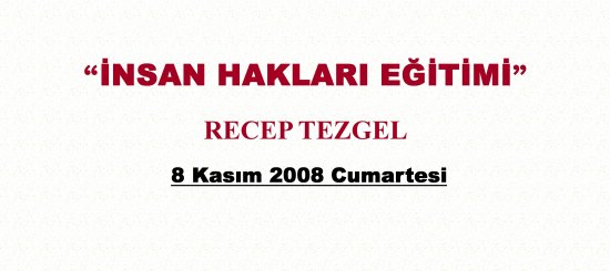 8 Kasım 2008 Cumartesi tarihinde İlim Dallarının Düşünce Temellerini Araştırma Enstitüsü’nde Recep TEZGEL, “İNSAN HAKLARI EĞİTİMİ” konulu konferansını gerçekleştirdi.
