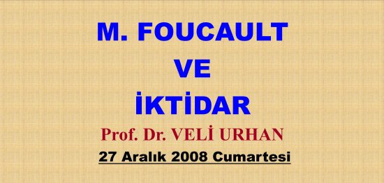 27 Aralık 2008 Cumartesi tarihinde İlim Dallarının Düşünce Temellerini Araştırma Enstitüsü’nde Prof. Dr. Veli URHAN, “M. FOUCAULT VE İKTİDAR” konulu