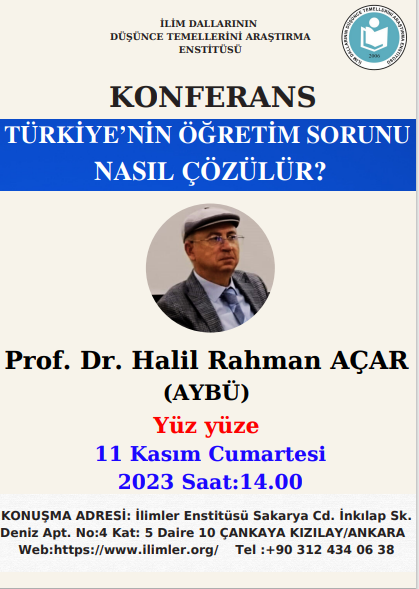 27 Nisan 2024 Cumartesi saat:14.00’te Enstitü Merkezinde Ankara Yıldırım Beyazıt Üniversitesi Felsefe Bölümü Öğretim Üyesi Prof. Dr. Halil Rahman AÇAR […]