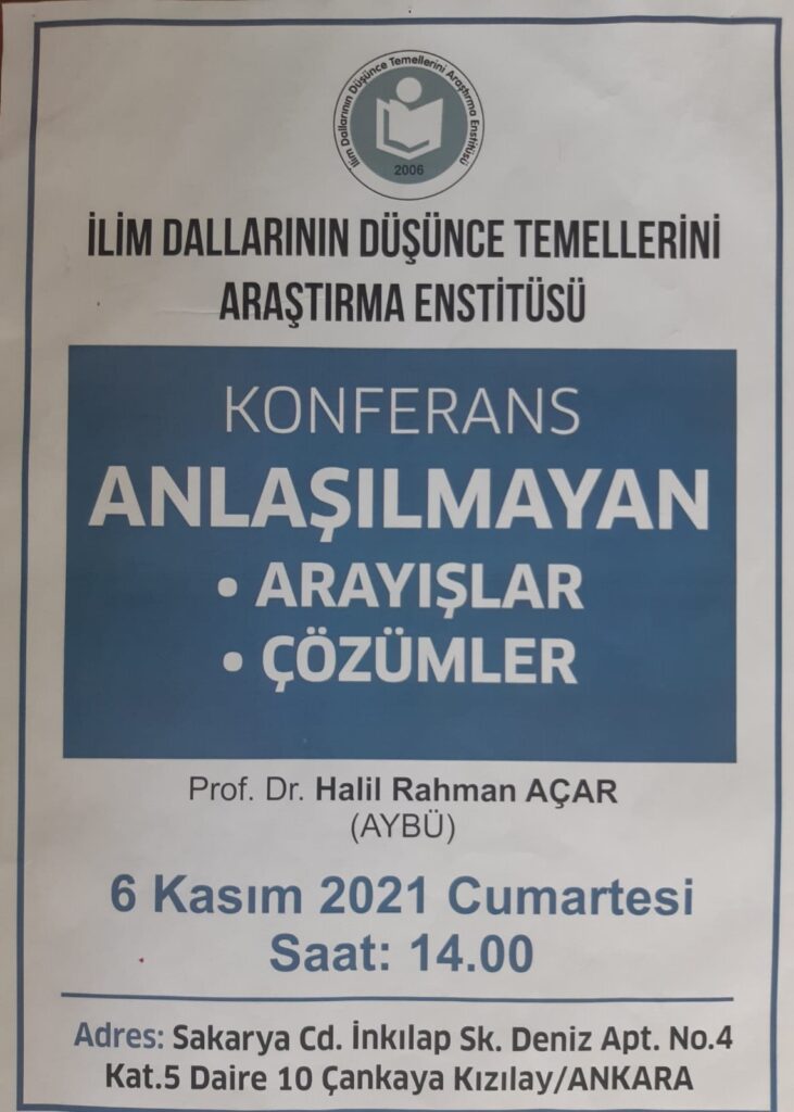 20 Kasım 2021 Cumartesi saat 14.00’te Enstitümüz Zemahşerī Müzakere Meclisi Salonunda, Prof. Dr. Alparslan AÇIKGENÇ “MODEL MEDENİYET İHTİYACI” konulu bir […]