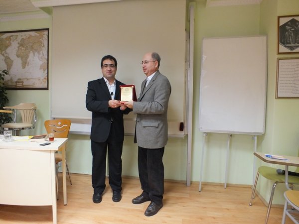 Konferansın sonunda Sayın Doç. Dr. Mustafa KARAGÖZ’e Enstitü Başkanı Halil Rahman Açar tarafından, günün anısına bir plaket takdim edildi.