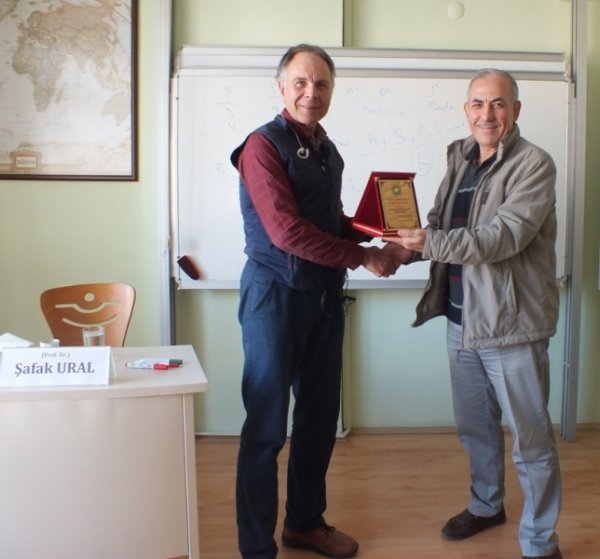 İşte burada düşünce biçimleri belirli noktalarda mantıkla örtüşen bir özeliğe sahip olduğunu, düşünce biçimlerinin denetlenmesinde formel mantığı dikkate almamız söz konusu olduğunu, informel mantığın ise düşünce biçimlerinin kendisi olduğunu, formel mantığın informel mantığı dışlamadığını, denetlenebilir kıldığını, İnformel mantığı kültürel birikime (medeniyete) yaslamamız, tutmamız ve açmamız gerektiğini belirterek konferansının soru cevap kısmına geçildi. Günün anısına Enstitümüz adına üyemiz Şevki Teke tarafından Prof. Dr. Şafak Ural’a plaket takdim edildi.