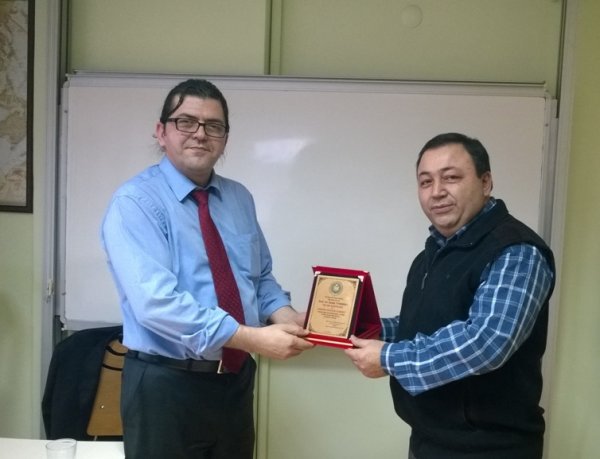Günün anısına Enstitümüz adına yönetim kurulu üyemiz Atila Kaynak tarafından Prof. Dr. Sadık Türker’e plaket takdim edildi.