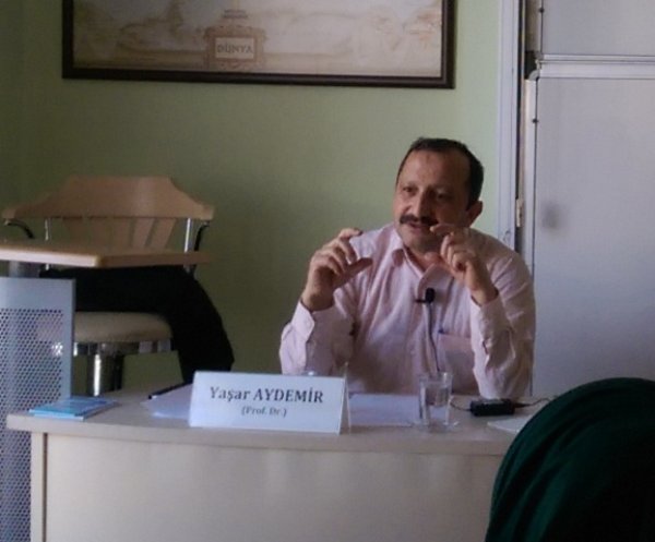 Selçuklu-Osmanlı medeniyetinin referans kaynaklarını, toplumun İslamlaşma sürecinde tasavvufun rolünü ve bu çerçevede kurulan şiir geleneğini örnekleriyle anlattı. Kurulan şiir geleneğinin başlangıcında anlatılan sevgilinin ilahî varlık olduğunu, bunu anlatan şairin de teşbihî bir dil kullandığını dile getirdi. Birçok beyitle bu fikrini destekleyen Aydemir Yunus Emre’nin;