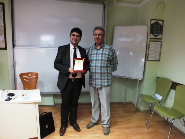 Günün anısına Enstitümüz adına Sayın Dr. Nurettin Yücel tarafından Sayın Prof. Dr. Bilal Sambur’a onur plaketi takdim edildi.