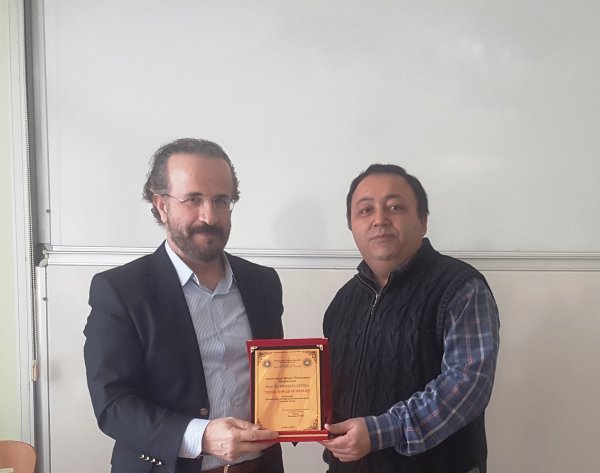 Konferans sonrası günün anısına Enstitümüz adına hazırlanan plaket, Enstitümüz Yönetim Kurulu üyesi Atila Kaynak tarafından Prof. Dr. Mustafa Çevik’e takdim edildi.