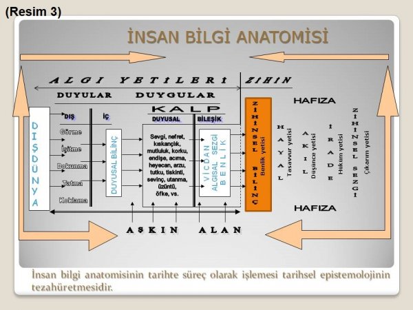 İnsan bilgi anatomisinin tarihte süreç olarak işlediğini ve tarihsel epistemolojinin uygulamalı epistemoloji olduğunu ileri sürdü: (Resim 3)