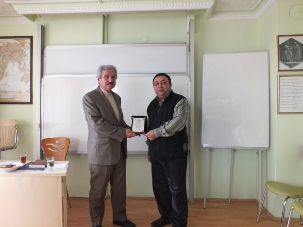 Konferansın sonunda, Sayın D. Mehmet DOĞAN’a Enstitü adına yönetim kurulu üyesi Atila KAYNAK tarafından, günün anısına bir plaket verildi.