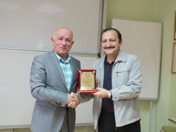 Konferansın sonunda Yrd. Doç. Dr. Hüseyin ÖZBAY’a, Enstitü Üyesi Prof. Dr. Yaşar AYDEMİR tarafından, günün anısına bir plaket takdim edildi.
